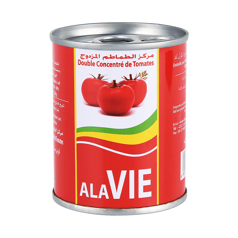 120 g säilykkeet (helppo avoin/ kova avoin) korkealaatuista tomaattipasta on valmistettu tiukasta valikoimasta kypsiä, kirkkaita, aitoja punaisia tomaatteja premium -tuotantoalueilta. Nämä tomaatit eivät ole vain houkuttelevia, vaan myös runsaasti luonnollista makeutta ja hapanvuutta, mikä antaa tomaattipastalle rikkaan ja puhtaan tomaatin maun. Valitut tomaatit murskataan huolellisesti hienon massan muodostamiseksi, mikä tarjoaa tasaisen ja herkän tomaattipastapohjan seuraaville prosesseille. Tämä vaihe varmistaa, että tomaattipasta on herkkä ja sileä maku.